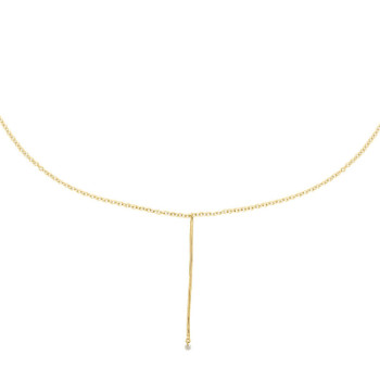 DETTAGLIGIROCOLLO IN ORO 9KT CON BACCHETTA LUNGA E BRILLANTE BIANCO FORATOSIGNIFICATO SIMBOLODIMENSIONECARATI0,05 KTCOLLEZIONEDrilled Diamond...