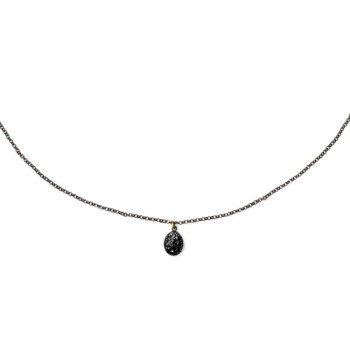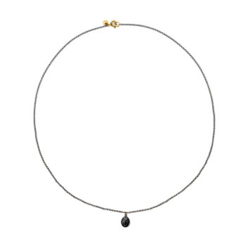 DETTAGLIGIROCOLLO SU CATENA IN ARGENTO BRUNITO CON OVALE IN ORO 9KT E BRILLANTI NERISIGNIFICATO SIMBOLOL’OVALE DI GINGER: l’ovale rappresenta una...