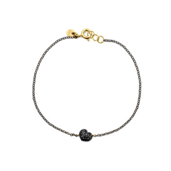 DETTAGLIBRACCIALE SU CATENA IN ARGENTO BRUNITO CON CUORE PICCOLO IN ORO 9KT E BRILLANTI NERISIGNIFICATO SIMBOLOIL CUORE DI GINGER: Il cuore,...