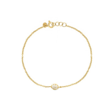 DETTAGLIBRACCIALE IN ORO 9KT CON OVALE PICCOLO IN BRILLANTI BIANCHISIGNIFICATO SIMBOLOL’OVALE DI GINGER: l’ovale rappresenta una forma armoniosa e...