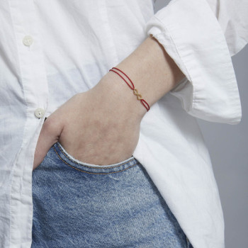 DETTAGLIBRACCIALE SU CORDINO COLORATO CON SIMBOLO IN ORO 9KT INFINITO IN FILOSIGNIFICATO SIMBOLOL’INFINITO DI GINGER: Usato in matematica per...