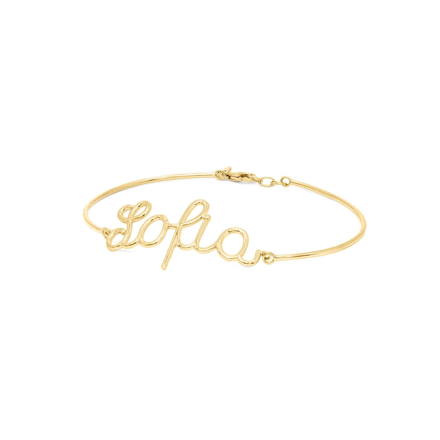 BRACCIALE SU FILO RIGIDO IN ORO 9KT CON NOME TERZA MISURA IN FILO