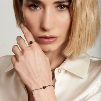 DETTAGLIBRACCIALE SU CATENA IN ARGENTO BRUNITO CON QUADRATO PICCOLO IN ORO 9KT E BRILLANTI NERISIGNIFICATO SIMBOLOIL QUADRATO DI GINGER: Il...