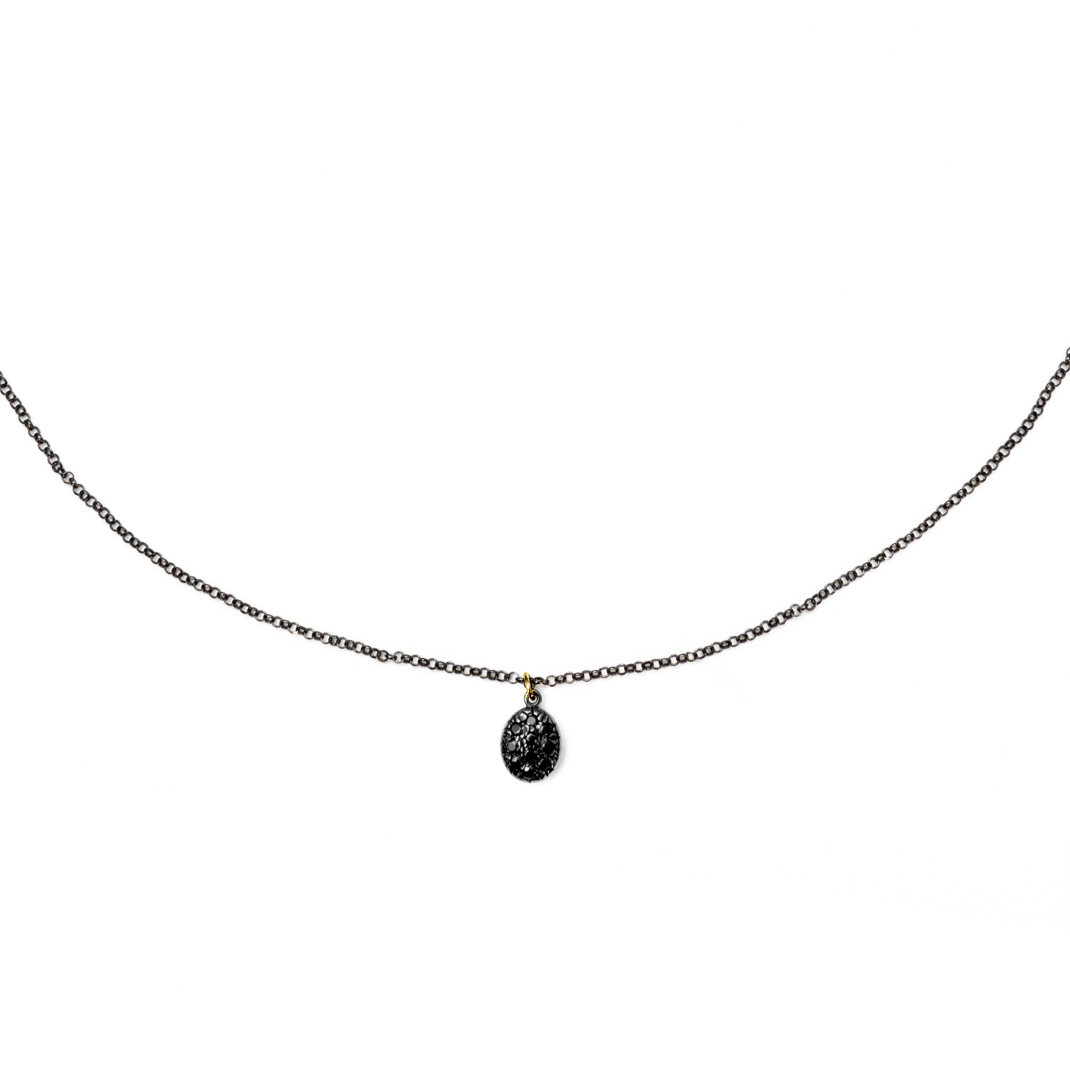 GIROCOLLO SU CATENA IN ARGENTO BRUNITO CON OVALE IN ORO 9KT E BRILLANTI NERI