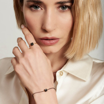 DETTAGLIBRACCIALE SU CATENA IN ARGENTO BRUNITO CON QUADRATO PICCOLO IN ORO 9KT E BRILLANTI NERISIGNIFICATO SIMBOLOIL QUADRATO DI GINGER: Il...