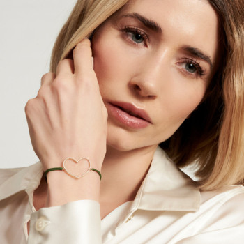 DETTAGLIBRACCIALE SU CORDINO COLORATO CON SIMBOLO CUORE IN ORO 9KT QUARTA MISURA IN BRILLANTI BIANCHI SIGNIFICATO SIMBOLOIL CUORE DI GINGER: Il...
