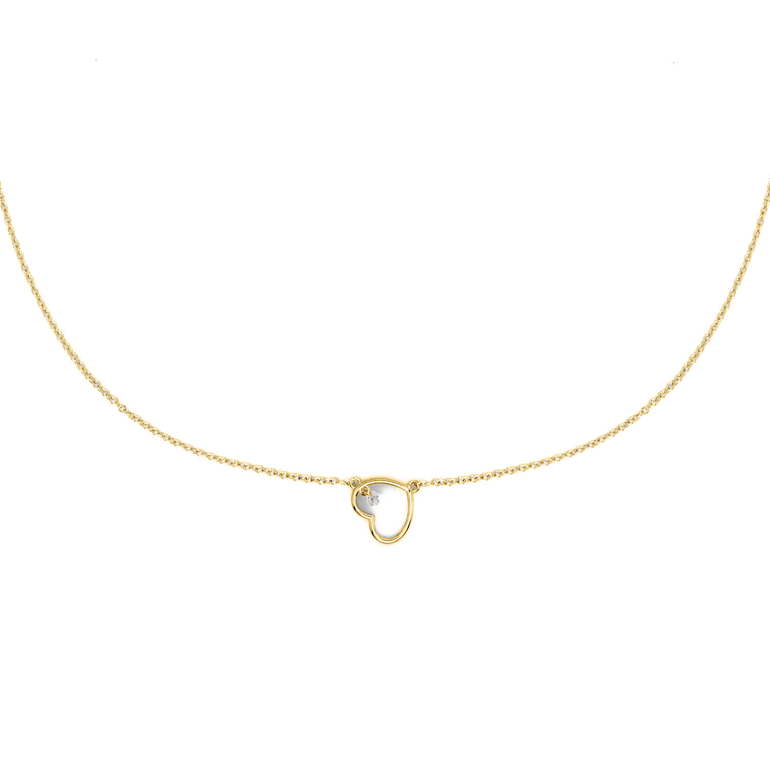GIROCOLLO IN ORO 9KT CON SIMBOLO CUORE E BRILLANTE FORATO DA 0,05 CT