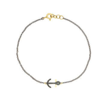DETTAGLIBRACCIALE SU CATENA IN ARGENTO BRUNITO CON ANCORA IN ORO 9KT E BRILLANTI NERISIGNIFICATO SIMBOLOL’ ANCORA DI GINGER: In senso figurato,...