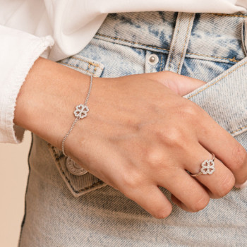 DETTAGLIBRACCIALE IN ORO 9KT CON SIMBOLO QUADRIFOGLIO SECONDA MISURA IN BRILLANTI BIANCHISIGNIFICATO SIMBOLOIL QUADRIFOGLIO DI GINGER: Ogni giorno...