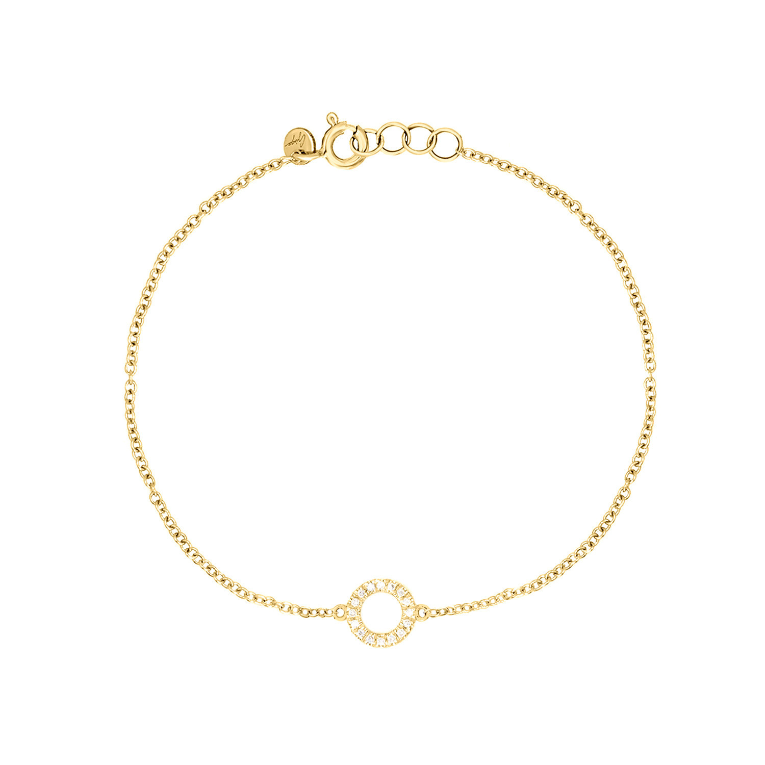 BRACCIALE IN ORO 9KT CON SIMBOLO CERCHIO SECONDA MISURA IN BRILLANTI BIANCHI