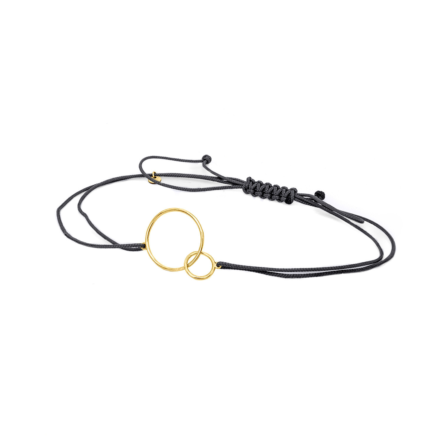 BRACCIALE SU CORDINO COLORATO CON SIMBOLO IN ORO 9KT CERCHIO SECONDA MISURA E CERCHIO TERZA MISURA IN FILO