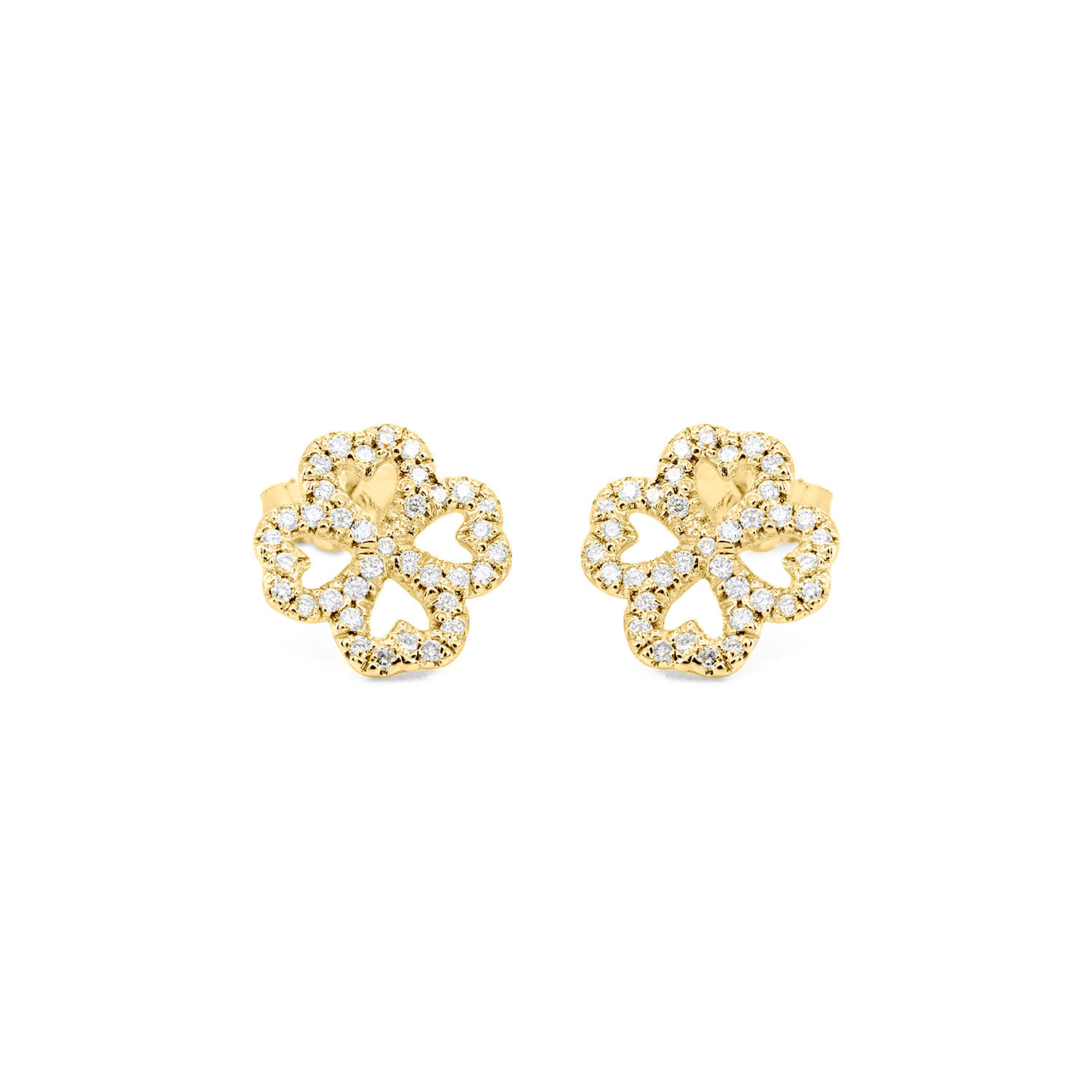 PAIO ORECCHINI IN ORO 9KT CON SIMBOLO QUADRIFOGLIO SECONDA MISURA IN BRILLANTI BIANCHI