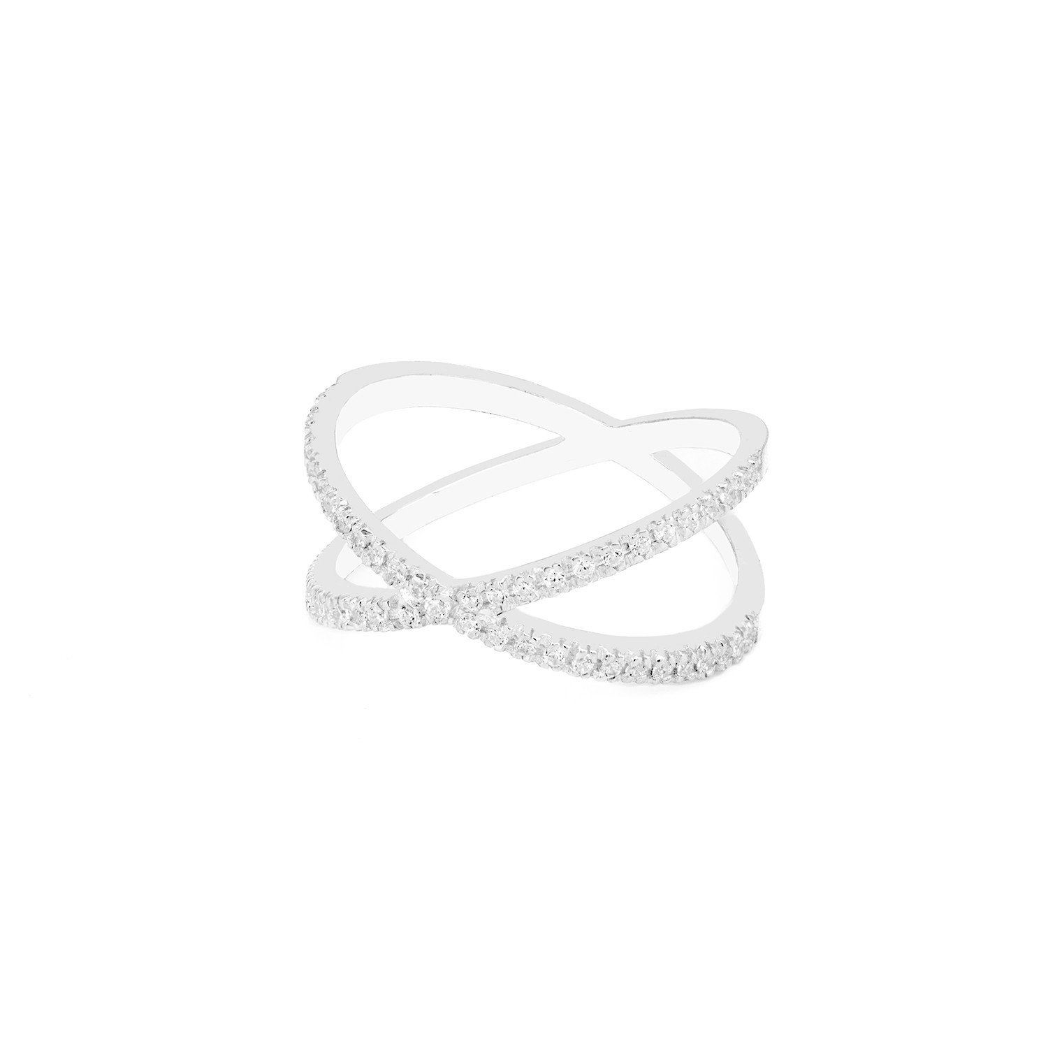 ANELLO IN ORO 9KT A FORMA DI X IN BRILLANTI BIANCHI