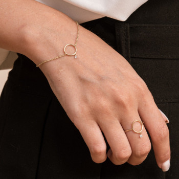 DETTAGLIBRACCIALE IN ORO 9KT CON SIMBOLO CERCHIO E BRILLANTE FORATO DA 0,05 CTSIGNIFICATO SIMBOLOIL CERCHIO DI GINGER: Il cerchio in cui ogni...