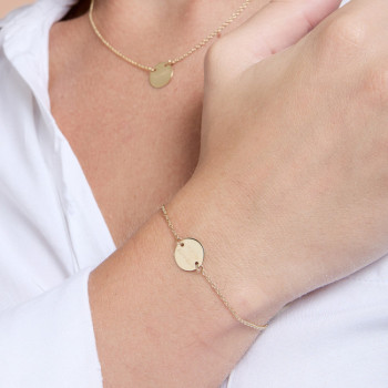 DETTAGLIBRACCIALE IN ORO 9KT CON SIMBOLO TONDO TERZA MISURA INCISO IN LASTRASIGNIFICATO SIMBOLOLE LETTERE DI GINGER: Ogni gioiello di Ginger...