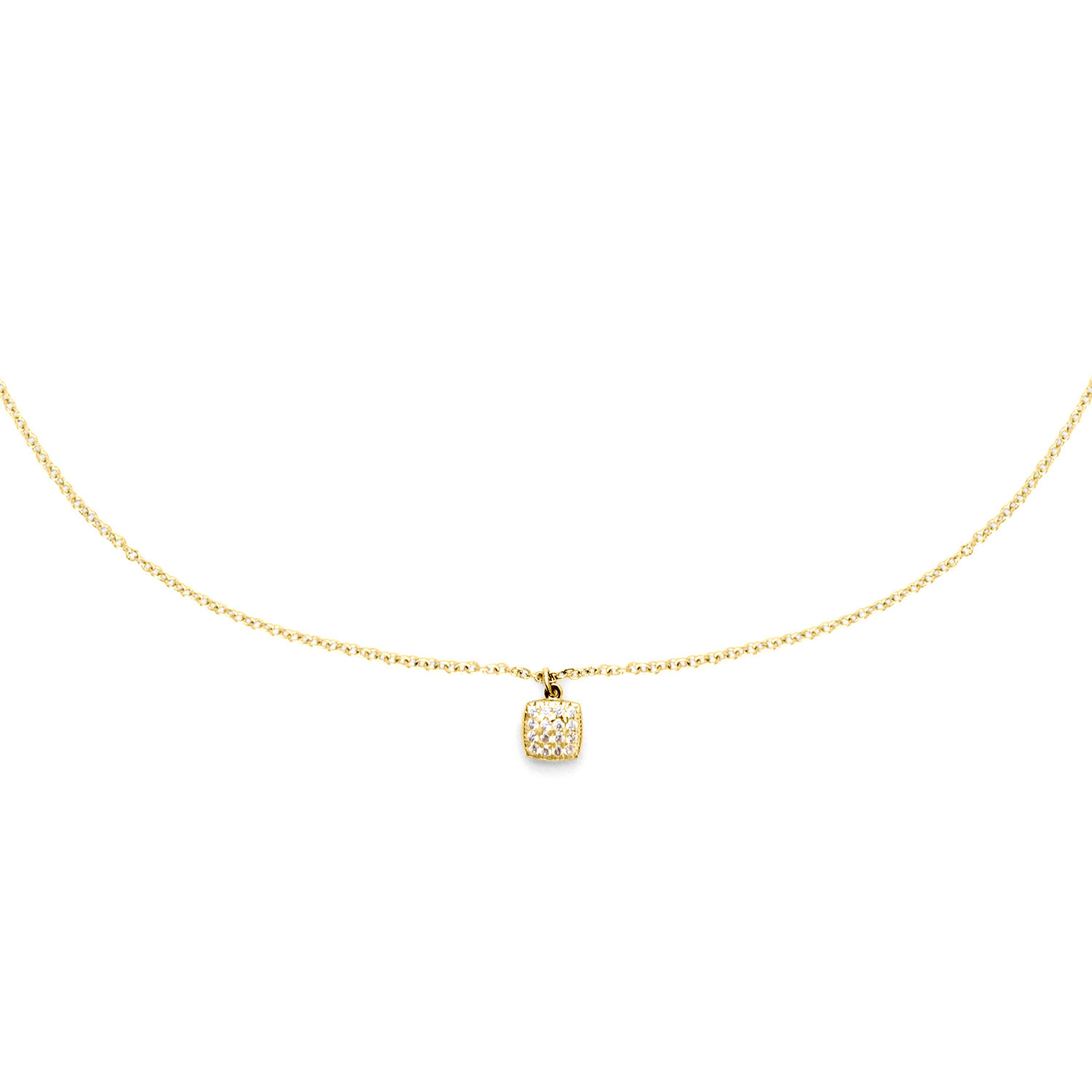 GIROCOLLO IN ORO 9KT CON QUADRATO PICCOLO IN BRILLANTI BIANCHI