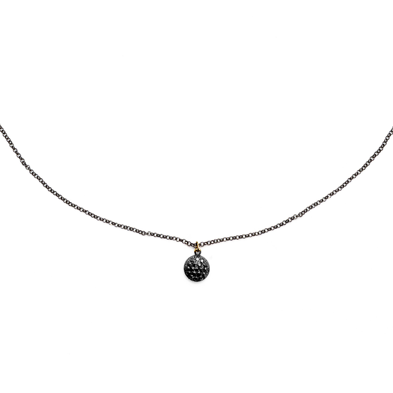GIROCOLLO SU CATENA IN ARGENTO BRUNITO CON TONDO PICCOLO IN ORO 9KT E BRILLANTI NERI
