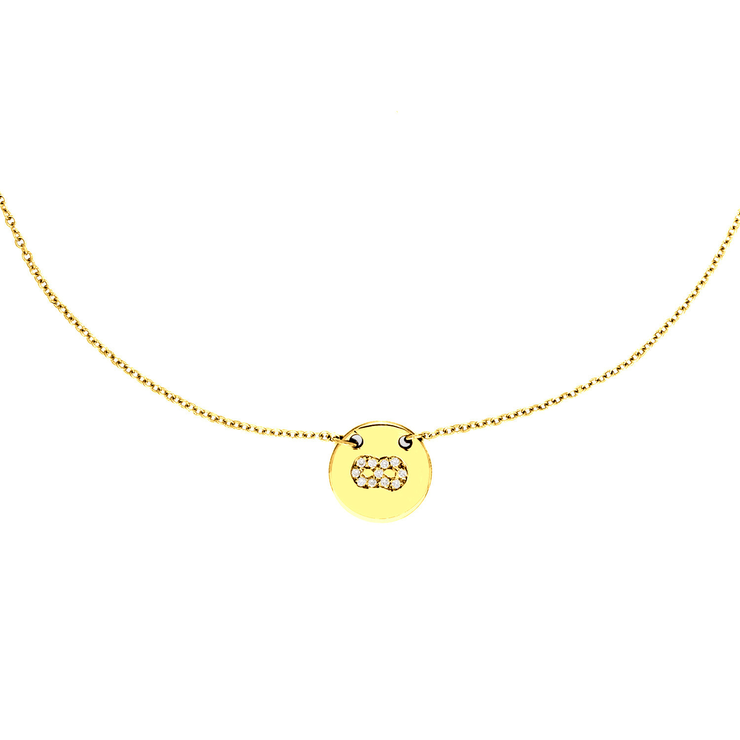 GIROCOLLO IN ORO 9KT CON SIMBOLO TONDO TERZA MISURA INCISO SIMBOLO INFINITO IN BRILLANTI BIANCHI