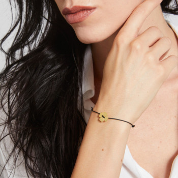 DETTAGLIBRACCIALE SU CORDINO COLORATO CON SIMBOLO QUADRIFOGLIO IN ORO 9KT TERZA MISURA IN LASTRASIGNIFICATO SIMBOLOIL QUADRIFOGLIO DI GINGER: Ogni...