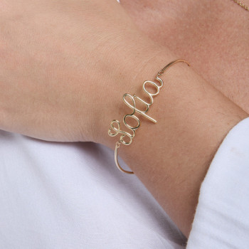 DETTAGLIBRACCIALE SU FILO RIGIDO IN ORO 9KT CON NOME TERZA MISURA IN FILOSIGNIFICATO SIMBOLOLE LETTERE DI GINGER: Ogni gioiello di Ginger racconta...