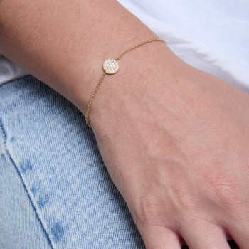 DETTAGLIBRACCIALE IN ORO 9KT CON SIMBOLO TONDO SECONDA MISURA IN BRILLANTI BIANCHISIGNIFICATO SIMBOLOIL CERCHIO DI GINGER: Il cerchio in cui ogni...