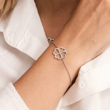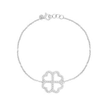 DETTAGLIBRACCIALE IN ORO 9KT CON SIMBOLO QUADRIFOGLIO TERZA MISURA IN BRILLANTI BIANCHISIGNIFICATO SIMBOLOIL QUADRIFOGLIO DI GINGER: Ogni giorno...