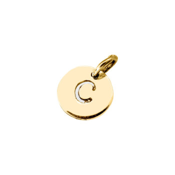 DETTAGLICIONDOLO IN ORO 9KT CON SIMBOLO TONDO PICCOLO E INIZIALE TRAFORATASIGNIFICATO SIMBOLOLE LETTERE DI GINGER: Ogni gioiello di Ginger...